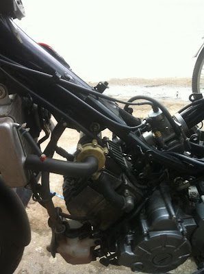 Posisi mesin saat terpasang...namun disini bloknya belum di las untuk di bikinkan water jaket